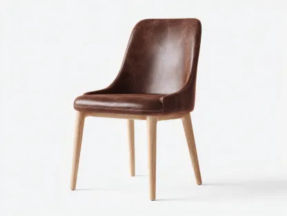 Siedzisko i oparcie pokryte są skórą ekologiczną w kolorze brązowym o delikatnie matowym wykończeniu. Nogi wykonane z drewna w jasnym odcieniu zapewniają stabilność oraz naturalny charakter. Staranne wykonanie i gładkie krawędzie podkreślają jakość produktu.