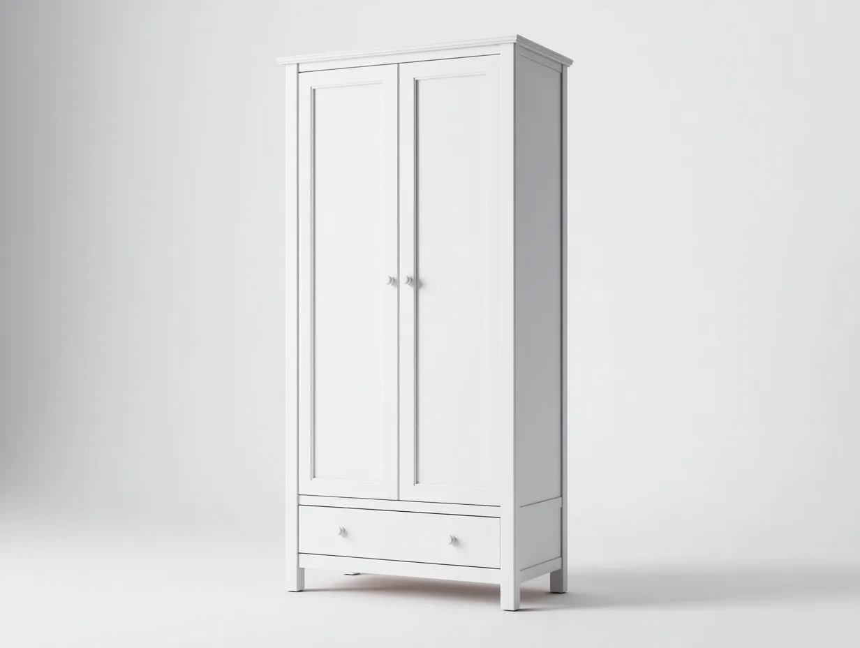 Szafa z kategorii Szafy dwudrzwiowe to eleganckie i praktyczne rozwiązanie do przechowywania odzieży w sypialni, garderobie lub pokoju dziennym. Jasna kolorystyka oraz klasyczna forma sprawiają, że mebel łatwo dopasować do różnych aranżacji wnętrz.