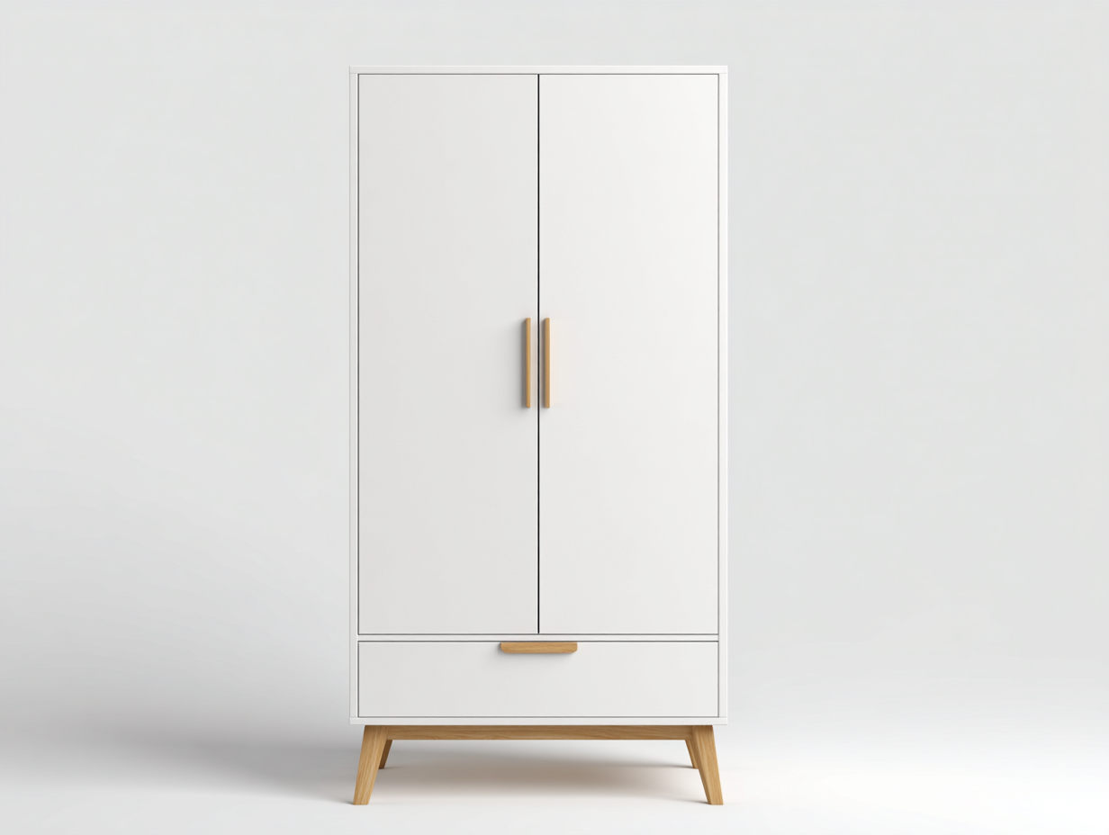 Szafa z kategorii Szafy dwudrzwiowe to funkcjonalny mebel do przechowywania odzieży w sypialni, garderobie lub pokoju dziennym. Połączenie białej powierzchni z elementami w kolorze dębu naturalnego nadaje jej lekki, skandynawski charakter, który harmonijnie wpisuje się w nowoczesne wnętrza.