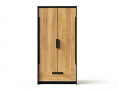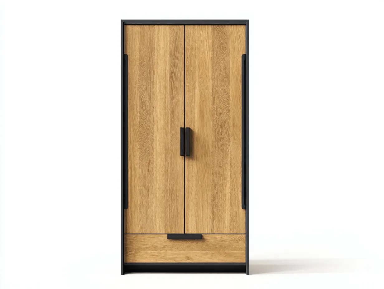 Szafa z kategorii Szafy dwudrzwiowe to funkcjonalny mebel przeznaczony do przechowywania odzieży i tekstyliów. Połączenie dekoru drewna z czarnymi detalami nadaje całości wyrazisty charakter, który dobrze wpisuje się w nowoczesne oraz loftowe aranżacje wnętrz.